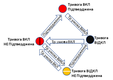 Рис. 2. Спрощений автомат станів тривог