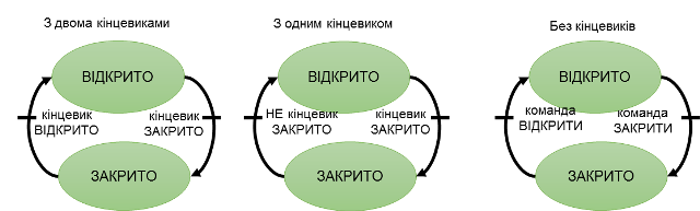 із підтвердженням стану (кінцеві вимикачі, датчики положення)