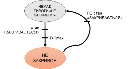 Рис. 5. Діаграма спрощеного автомату станів для тривоги «НЕ ЗАКРИВСЯ»