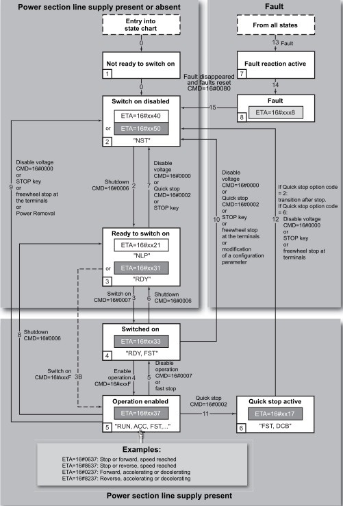 - стан готовності/живлення привода